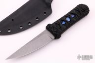 This Compact Aikuchi from Ben Tendick of B.R.T. Bladeworks features a tumbled kwaiken style blade with swedges. .202" Blade stock 1.107" Blade Depth. The handle has a Tsuka Ito wrap over a epoxy soaked hemp cord underwrap and a titanium menuki. Includes kydex sheath and C.O.A. New from maker.