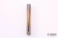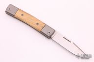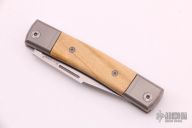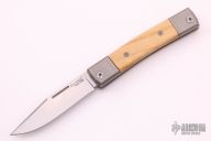 This Bestman Slipjoint by Lion Steel features a satin finished blade with nail nick. The handle has bead blasted titanium bolsters and liners, olive wood covers, satin finished stainless steel spring. Has half-stop, flush in all positions. Comes with original box and papers. Excellent condition.