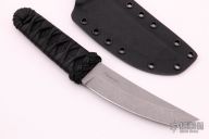 This Kraiken from Ben Tendick of B.R.T. Bladeworks features a kwaiken blade with swedges. .204" Blade stock 1.27" Blade Depth. The handle has a Tsuka Ito wrap over hemp cord underwrap. Includes kydex sheath and a C.O.A. Brand New from Maker.