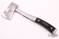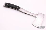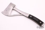This No.2 Safety Axe by Marbles has checkered plastic handle grip, this "pocket axe" has a spring loaded safety guard that folds down into the handle.  Stamped only with the size No. 2 on the axe head, and marked "Marble - Gladstone, Mich., USA". Has some marks and very light patina, otherwise excellent condition for its age.