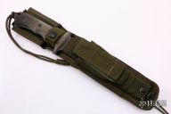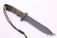 "This knife is known to the U.S. Army Special Forces as "The Yarborough" and to everyone else as "The Green Beret Knife". It is a no-nonsense, hardworking tool, designed by renowned knife maker and designer Bill Harsey, with function and manufacturing input from Chris Reeve. Made in Boise, Idaho by Chris Reeve Knives, the Green Beret Knife is a using knife that, just like the men for whom it was designed, is efficient, tough and uncompromising." Includes a grey Black Hawk Sheath. Excellent condition.