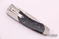 This knife features a satin finished blade with single thumbstud. The handle has a bead blasted titanium frame with acrylic inlays and a tip down stainless steel clip. Has some light scuffs, otherwise excellent condition.