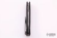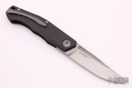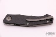 This Pero Flipper by Shirogorov and Dmitry Sinkevich features a matte finished clip point blade with fullers, notched thumbrest and flipper. The handle has a carbon fiber frame, inlaid titanium liner with stainless lockface insert and ceramic detent, matte finished titanium backspacer and tip up clip with hidden screws. Has MRBS. Comes with original box and papers. Excellent condition. #84 of 200
