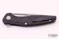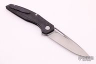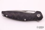 This Model 111 Gen5 by Shirogorov Knives has a tumble finished blade with thumbhole, notched thumbrest and flipper. The handle has purple carbon fiber scales, anodized backspacer and titanium tip up clip with hidden screws, stainless steel single liner. MRBS. Dead center blade seating, excellent detent and lockup, and flips superbly. Comes with original box and papers. Knife is in excellent condition.