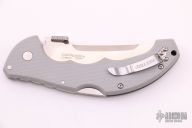 The Talwar 4 by Cold has a satin finished upswept blade with thumbdisc. The handle has a gray G-10 frame and tip up reversible clip. Comes with original box and extra clip. Excellent condition.
