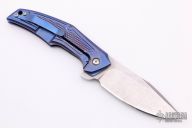 The Rowdy HiTech project is a limited run of 240 pieces. Designed in Paris, France by Tashi Bharucha & Made in North Carolina by McGinnis Knives. It has a stonewashed blade and flipper. The handle has a milled, tumbled and anodized titanium frame with black G-10 backspacer and a tip up tumbled and anodized titanium clip, lanyard hole. Comes with original box. Excellent condition.