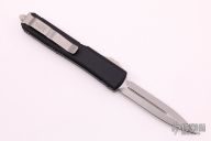 This Ultratech by Microtech is the 2021 Blade Show Special. It features a dagger ground double-edged stonewashed blade. The handle has a black aluminum frame with blasted stainless hardware and tip up clip. Comes with original box and papers. From the 2021 Blade Show. New condition.