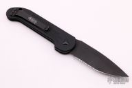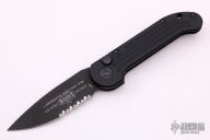 This LUDT auto by Microtech Knives has a black blade with a partially serrated edge and a black aluminum frame with all black hardware. Stainless steel clip. Dated 02/2021 and serial number 21736. Comes with original box. Excellent condition.