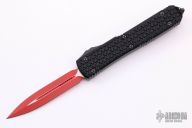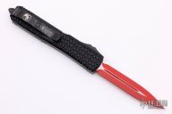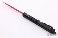 This Ultratech OTF automatic by Microtech features a D/E red blade. Black aluminum contoured frame with black tip down stainless steel clip. Dated 07/2021 and s/n 5274. Excellent condition. Includes original box and papers.