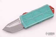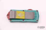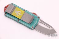 This Microtech Exocet features an apocalyptic finished tanto blade. The handle is comprised of a distressed green aluminum handle and a stainless clip that doubles as a money clip dated 04/2021 S/N 5236. Comes with original box and papers. Excellent Condition.