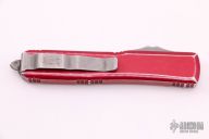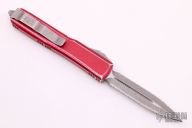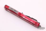 This Ultratech by Microtech features a bronzed apocalyptic double-edged blade with two fully serrated edges. The handle has a contoured red aluminum frame with Apocalyptic stainless steel hardware. Has a ding in the frame, otherwise excellent condition. Dated 11/2019 and s/n 154807.