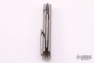 This Apache Front Flipper by Enrique Pena features a satin finished blade with a front flipper and notched thumbrest. The handle is composed of milled titanium with a matching backspacer and tip up pocket clip. Includes a Pena X-Series padded box. Excellent condition.