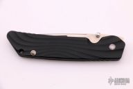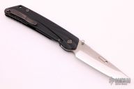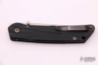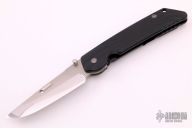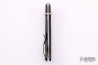 "The blade is convex on both sides in the tradition of the highly praised Japanese sword. This shape is both sharp and strong, and can still slice paper even after the 1,000 of hemp rope cuts. Using this blade form is one superb method of making an edge thick without losing of its sharpness. This is a knife of preeminent sharpness. You can enjoy its strong cutting capabilities for a long time. Even if used for rigorous cutting, the blade will not bite thanks to its convex shape. Other knives often will bite, and may nick if it is pulled out suddenly at that time. This knife scratches the plate of china. Please do not use it to cut food on the plate." The handle is sculpted black aluminum and tip up black stainless steel clip. Comes with original box and papers. Excellent condition. #638 on blade.