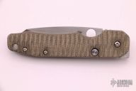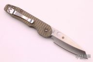 This Smock by Spyderco has a satin finish sheepsfoot style blade. The handle features micarta scales over stainless steel liners with a stainless steel pocket tip up pocket clip. Excellent condition.