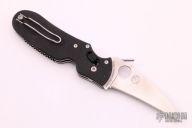 In the Philippines Visayan dialect, the literal translation of the word Pikal means to rip. In the U.S. the term Pikal remains relatively new but a company called Shivworks is making headway in its introduction to the American market. Its English definition is twofold: It is a rising martial arts genre and the name of a Spyderco knife designed to accompany this art form. As a self-defense platform, Pikal is carried out holding a knife in reverse grip with the sharpened edge facing inward toward the user. Pikal’s objective is not flowing drills with your opponent but rapidly and effectively striking and surprising. The Spyderco C103 P’Kal, offers features specific to this activity but these same features also translate well for everyday carry. The CPM S30V plain edge blade curves to a point. When held with the tip facing downward it feels natural and comfortable making pulling, downward cuts. Protruding from the top of the blade’s spine is a removable Emerson Opening feature. The device popularized and patented by Ernest Emerson of Emerson Knives, functions by catching the back of a pant’s pocket when drawing the knife, opening blade in the same motion. Spyderco’s P’Kal is designed for reverse grip use with a formidable choil on top of the handle that holds the little finger when gripping, affording better dexterity and control. Spyderco’s patented Ball Bearing Lock® sits above and behind the blade. The ball bearing component is housed in a plastic cover that’s accessible for both left and right hand opening. P’Kal clips in a pocket with a steel wire clip and carries tip-up. Made in Golden, Colorado U.S.A Earth Excellent condition. This knife is a Factory Second.