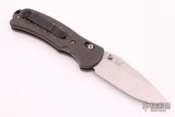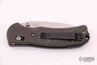 This Griptilian by Benchmade features a stonewash finished blade with notched thumbrest and dual thumbstuds. The handle has green G10 scales, black stainless steel clip, stainless steel liners. Has some light scuffs and scratches otherwise, excellent condition.