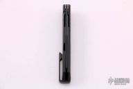 This iQ by Quiet Carry comes with a frame lock style locking mechanism and includes a stainless steel lock bar insert. The blade is a sheepsfoot style black blade and you have a knife that excels with scoring and slicing tasks. The black titanium frame with carbon fiber inlay. Has some light scuffs and scratches, otherwise excellent condition.