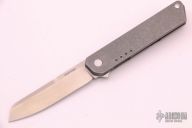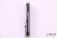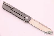 This iQ by Quiet Carry comes with a frame lock style locking mechanism and includes a stainless steel lock bar insert. The blade is a sheepsfoot style blade and you have a knife that excels with scoring and slicing tasks. Titanium scales, hardware, and stainless over travel stop. Has some light scuffs and scratches, otherwise excellent condition.