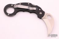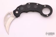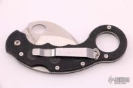 This Karambit by Bladetech is a Tarani design, it features a satin finished hawkbill blade with notched thumbrest and thumbhole opening. The handle is black G10 with a stainless steel backspacer and tip up reversible stainless steel clip. Has some light scuffs/scratches, otherwise excellent condition.