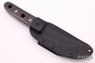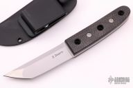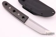 This Kwaiken by Randy Doucette features a bead blasted blade with a satin finished tanto edge, .151" blade stock and 1.136" blade depth, full tang construction. The handle has carbon fiber scales with titanium screws. Comes with a kydex sheath. Excellent condition.