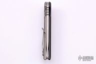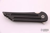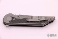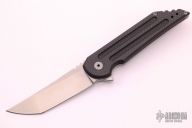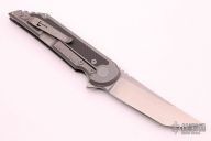 This UHEP frame-lock flipper by Jake Hoback has a stonewashed upswept/tanto blade, notched thumbrest and flipper. CBP caged bearing pivot. Handle is carbon fiber and titanium with carbon fiber inlay on the lockside, stonewashed titanium tip up clip and backspacer, clip is reversible left or right. This knife has an adjustable detent. Nice detent, lockup, and blade seating, and flips like a boss. Knife is in excellent condition and shows no signs of use. Comes in original box with COA. Excellent condition.