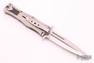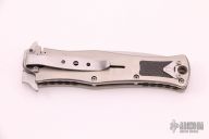This Madd Maxx IV features a hand rub satin finished blade with fullers, flipper and false top edge. The handle has a satin finished titanium frame with a carbon fiber inlays, tip up or down reversible stainless steel clip. The edges of the handle are carved and contoured to allow for a superior grip. The powerful assisted opening system allows you to open the knife quickly and easily. Excellent condition.