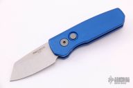 The Runt 5 by Pro-Tech Knives features a tumbled reverse tanto style blade. The handle features a smooth blue aluminum handle with a bead blasted tip up stainless steel pocket clip. Comes with original box and papers. New from maker!