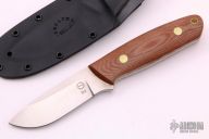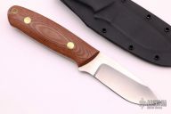 This is a KS-1 by Dozier Knives features a satin finished blade with .158" blade thickness and 1.133" blade depth, full tang construction. Natural canvas micarta scales with brass pins. Right handed kydex horizontal sheath. Brand new from maker.