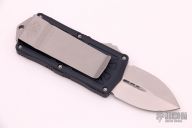 This Microtech Exocet features a 204p stonewash finish spear point blade. The handle is comprised of black aluminum handles and a stainless clip that doubles as a money clip dated 09/2019 S/N 1433. Comes with original box and papers. Has some light scratches, otherwise excellent condition.