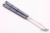 The highly anticipated Krake Raken balisong butterfly knife offers the first live-blade bali from Squid Industries. It features all of the precision-engineered smoothness of a Squid trainer, updated with a beautifully finished tanto blade. The channel constructed aluminum handles are built with rounded edges, a crowned spine, and bushings. The Krake Raken has been upgraded from 6061 to a 7075 aluminum alloy, which boasts a higher strength and is more durable to drops and use.