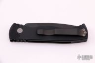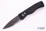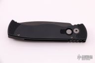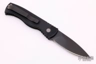 This TR-2 Side Opening Auto from Pro-Tech Knives has a black coated drop/spear point blade with partial serrations. The handle is partially knurled black aluminum with black coated stainless steel tip up clip. Excellent condition.