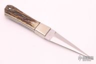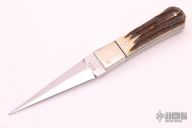 This Dagger from P.F. Beck features a mirror polished double edged blade with .119" blade stock and .777" blade depth. The handle has nickel silver bolsters, stag scales with black liners and full tapered tang construction. Has a few light scratches, otherwise excellent condition.