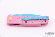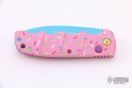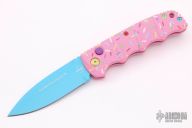 Have you ever been unfortunate enough to have to share a donut? Your plight only gets worse when you find you have to cover your high-speed, low-drag, modified, custom, mirror-edged piece of pocket jewelry in sticky sweetness. What you need is a knife designed from the ground up to go to war with a donut. And although its path to existence was unorthodox, the Dessert Warrior is here! This automatic will snap open before anyone can take more than their half of the donut. The handle is bright pink with sprinkles, and the blade has a candy blue finish, making the knife blend in with the pretty pastries of the shop. Gone are the days of not having the right tool for the job!