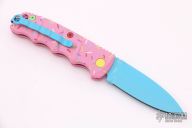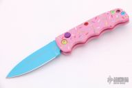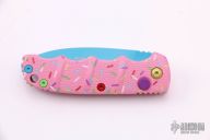 Have you ever been unfortunate enough to have to share a donut? Your plight only gets worse when you find you have to cover your high-speed, low-drag, modified, custom, mirror-edged piece of pocket jewelry in sticky sweetness. What you need is a knife designed from the ground up to go to war with a donut. And although its path to existence was unorthodox, the Dessert Warrior is here! This automatic will snap open before anyone can take more than their half of the donut. The handle is bright pink with sprinkles, and the blade has a candy blue finish, making the knife blend in with the pretty pastries of the shop. Gone are the days of not having the right tool for the job!