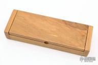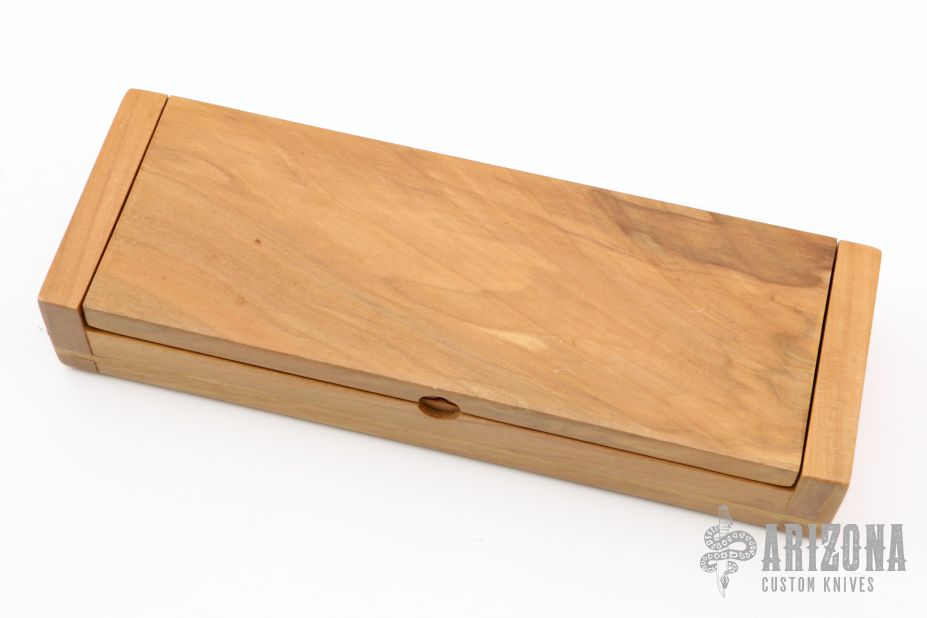 This Knife by Tim Britton has a satin finished blade with full tang, .107" blade stock and 1.024" depth. Handle has engraved nickel silver bolsters and vintage Westinghouse paper micarta scales with nickel silver pins. Comes with a wooden presentation box. New from maker. Has some light scratches.