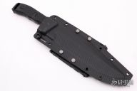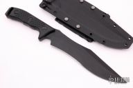This Arbiter by Microtech features a black recurve partially serrated blade with a notched thumbrest and sharpened top edge, .211" blade stock and 1.873" blade depth, full tang construction. The handle has black G-10 scales with black hardware, butt has a lanyard hole. Comes with kydex sheath with MOLLE locks. Comes with original box and papers. Serial number 2232 and dated 11/2019. Has a few light scuffs, otherwise excellent condition.