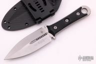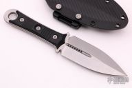 This SBD by Microtech Knives and Borka Blades features a stonewash finished double edged blade with .188" blade stock and 1.556" blade depth, full tang construction with black G-10 scales. Comes with the original kydex sheath, box and papers, dated 12/2020 s/n 526. Excellent condition.