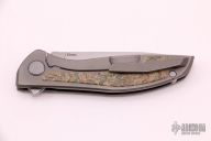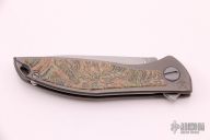 This Neon NL by Shirogorov features tumbled blade with notched thumbrest and flipper. The handle has a tumbled titanium frame with crazy micarta inlays. Comes with box and papers. Rides on MRBS. Excellent condition.