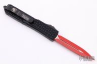 This Ultratech OTF automatic by Microtech features a D/E red blade. Black aluminum contoured frame with black tip down stainless steel clip. Dated 07/2021 and s/n 5395. Excellent condition. Includes original box and papers.