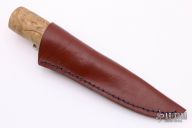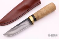 This Utility Bushcraft Hunter by Last Knives features a drop point blade with nice hamon, .143" blade stock and 1.129" blade depth, hidden tang construction. The handle has a brass guard with a coffee burl grip, buffalo horn and brass spacers. Comes with a brown leather sheath and COA. New from maker.