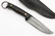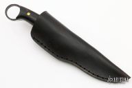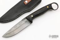 This Spinsharp by Murad Custom Knives features a nice hamon, .176" blade stock and 1.124" blade depth, full tang construction. The handle has ebony wood scales with brass pins and liners. Comes with a black leather sheath and COA. New from maker.