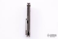 This Slim Midi Marauder from Medford Knife and Tool features a black PVD drop point blade with thumb stud and recess. The handle is comprised of a milled and tumbled titanium frame with tip up clip over black spacers. Excellent detent, lockup, and seating. Comes with a Medford box, papers and hard case. Excellent condition