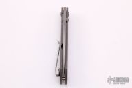 This Gen 1 "Beast" frame-lock folder by Three Sisters Forge features a tumbled clip point blade with single knurled thumbstud. The handle has a textured and bead blasted titanium frame with stainless steel clip, tip up carry. Nice detent. Excellent Condition. Comes with a zippered case. Has been resharpned on a Wicked Edge type sharpening system, very sharp.