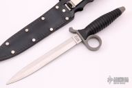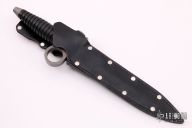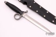 This T2 Terminator Dagger by United Cutlery features a double edged satin finished blade with .180" blade stock and .853" blade depth, hidden tang construction. The handle has a stainless steel guard and butt with a black composite grip. Comes with a black leather belt/boot sheath. Has some light scuffs, otherwise excellent condition. MADE IN USA.