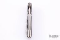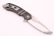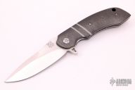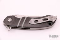 This Wayfarer W448 by Olamic Cutlery features a satin finish drop point blade with swedge, notched thumb ramp and flipper. The handle is comprised of carbon fiber scales with glow in the dark inlays over satin finish titanium liners and backspacer. The tumbled titanium clip is positioned for tip up carry. Lanyard hole in pommel. Comes with zipper case and COA. The pocket clip has some light carry marks, otherwise excellent condition.