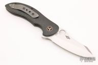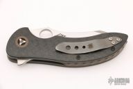 This Peter Carey designed Magnitude produced by Spyderco features a CPMS30V satin finished drop point blade with a swedge, notched thumbrest, flipper tab and deployment hole. The handle has carbon fiber scales over titanium liners. It has a brown G10 pivot collar, and "dragon spine" backspacer. Nice action, detent and blade seating. Light scuffs are visible on the pocket clip otherwise the knife is in Has a couple light scratches, otherwise excellent condition.
