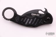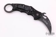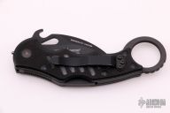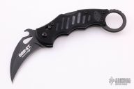 This folding Karambit by Fox Cutlery features a black hawkbill blade with thumbhole, notched thumbrest and wave feature. The handle has black G-10 scales, black stainless steel liners and backspacer. Tip up left or right reversible stainless steel clip. Comes with original box and papers. Has a little wear on the blade finish, otherwise excellent condition.
