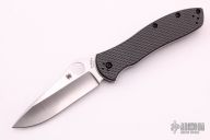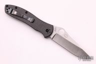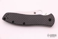 This Bradley2 liner lock folder by Spyderco features a satin finish blade with thumb hole. Carbon fiber pattern G-10 scales, polished stainless steel liners, and black coated stainless steel pocket clip, tip up carry, 4 way reversible. Strong lock up, nice detent and blade seating is center. Excellent condition. Comes with original box and papers.
