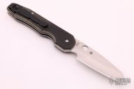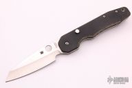 This Smock by Spyderco has a satin finish sheepsfoot style blade. The handle features "Sharp Dressed" black canvas micarta scales over stainless steel liners with a black deep carry titanium pocket tip up pocket clip. Comes with original box and paperwork. Excellent condition.