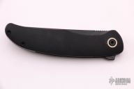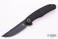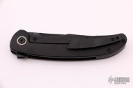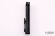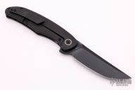 This Xerx by Adam Purvis features a black blade with a notched thumbrest and flipper.  The handle black PVD titanium scales, backspacer and tip up clip, bronze titanium pivot collars.  Includes the original box. Has a few scuffs, otherwise excellent condition.